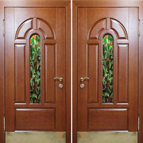 Элитная стальная дверь с отделкой массивом дуба и витражами в Сертолове