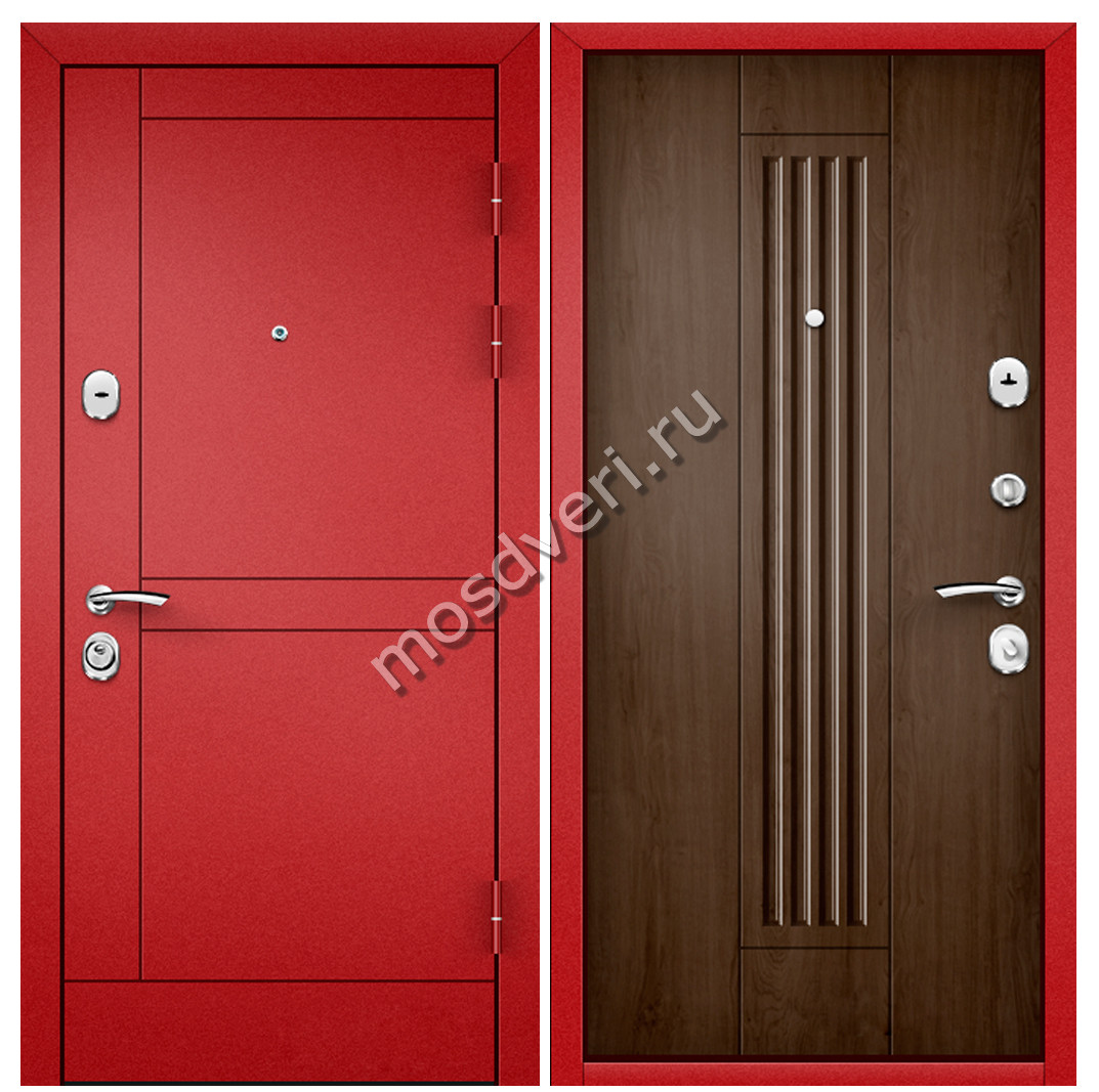 Красная входная дверь в квартиру KVD-07 — объединяет стильный внешний вид и максимальную защиту.